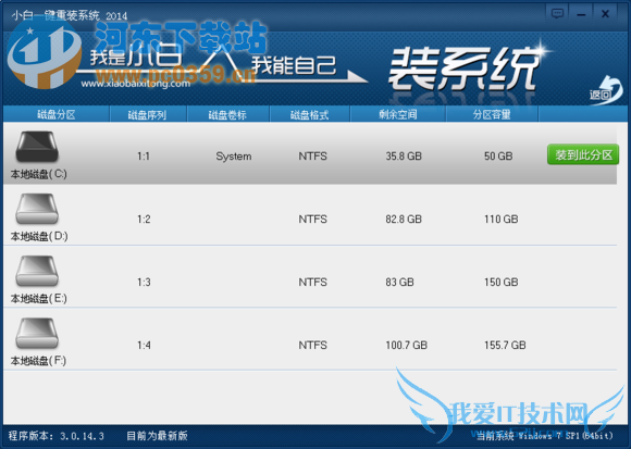 第二步:选择系统安装的磁盘分区,一般为你的C盘目录,也就是你当前系统的所在目录