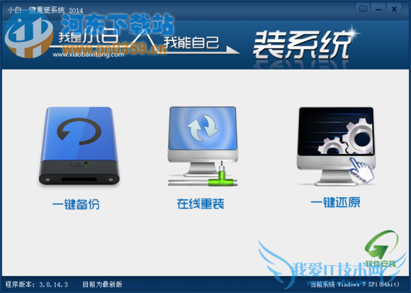 第一步:下载XiaobaiOnekey_V3.0.exe 《小白一键重装系统 3.2.2 绿色版》软件双击打开如下图,然后点击在线重装