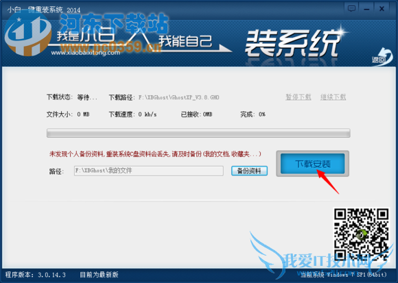 第四步:进入系统的下载安装界面,点击“下载安装”即可,然后开始自动下载你所选的系统版本,完了就会提示重启安装,整个系统安装基本完成!