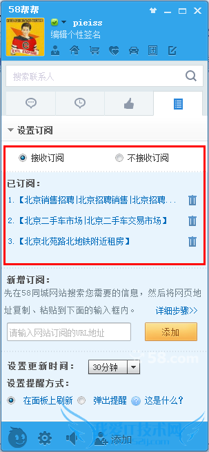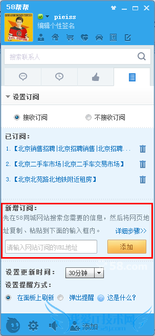 如何使用58帮帮订阅功能?