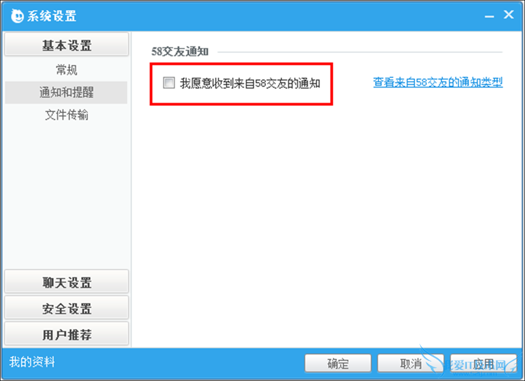 58交友的通知类型有哪些?