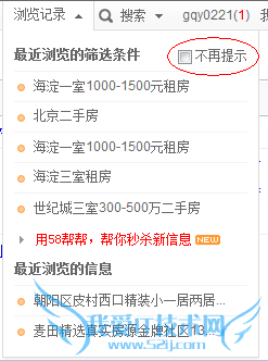 登录了58同城网页,在“浏览记录”里勾选“不再提示”,即可取消订阅服务;