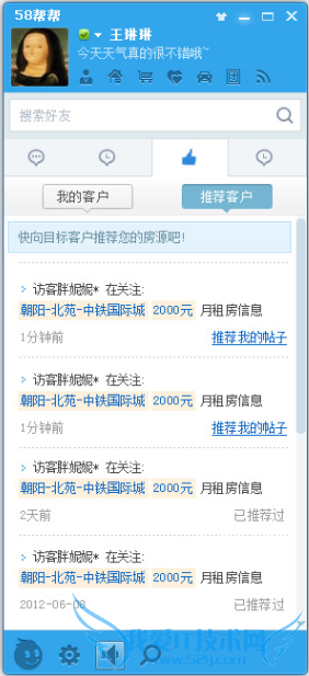 2. 经纪人每天保持登录58帮帮桌面版,当有客户访问他所在房产商圈的信息时,帮帮系统会把客户的信息推荐给经纪人。