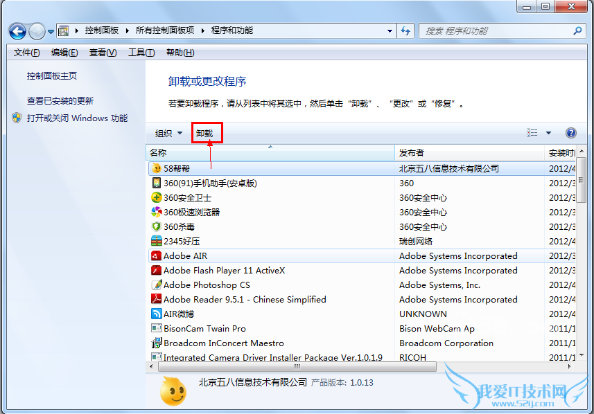 Windows系统中卸载“58帮帮”客户端程序指引