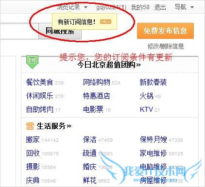 只要您登录以后使用58同城搜索信息,当您的筛选大于等于3个条件时,我们就为您自动保存这个信息为“订阅条件”。每天您第一次登陆58同城时,我们都会自动帮您检索您的“订阅条件”是否有更新的内容,如果有更新,我们会在网页上方为您弹出提示;