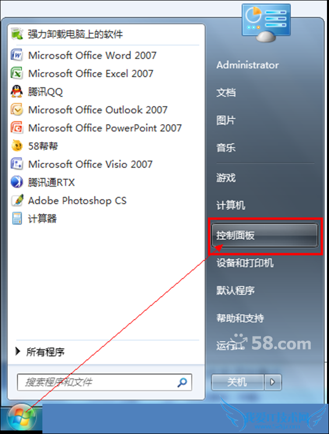 点击Windows“开始”菜单-选择“控制面板”