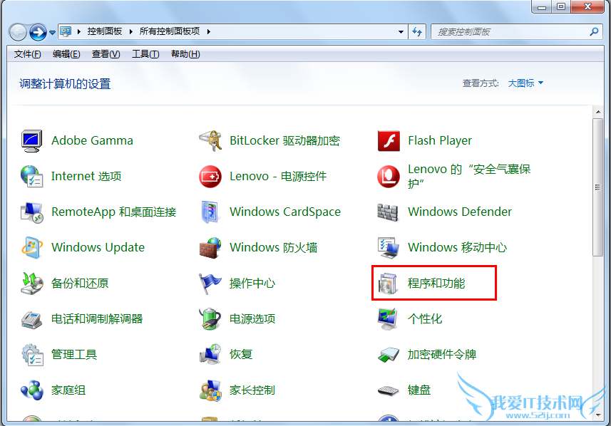 ① 在弹出的“控制面板”界面中选择“程序和功能”