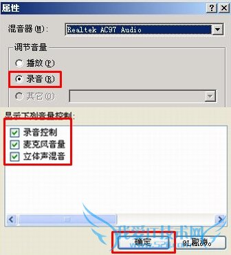 2、在打开的属性界面中,单击“录音”选项,然后单击“确定”。如图: