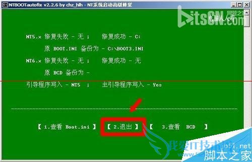 6、修复完毕,选择②退出,重启电脑,就能够正常引导硬盘了。