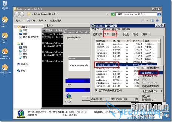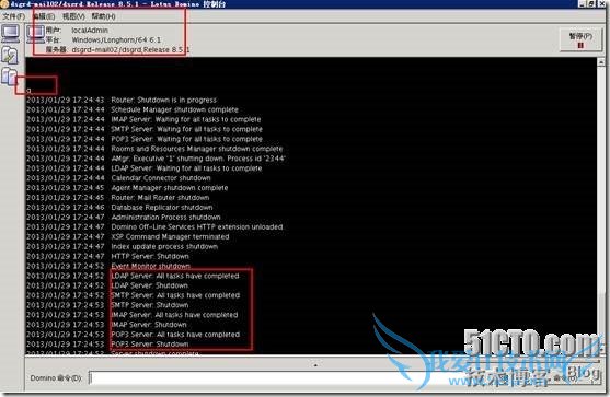 如果升级失败的话我们将D盘下的lotus目录及E盘的Lotus目录删除,同时将相应备份路径的Lotus01更改命名为Lotus,然后重启Domino服务。