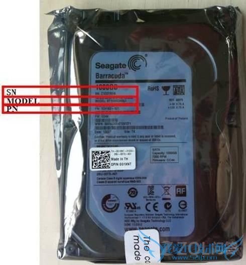 透过静电袋,可以看到硬盘标贴上面有SN、MODEL、PN。SN是流水号,每个硬盘只有1个;MODEL是型号;PN称为料号