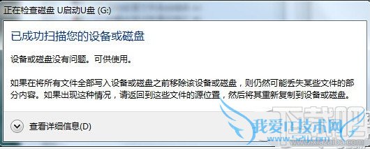 3.磁盘检查完成后,会弹出相应提示窗口,点击“关闭”按钮结束任务,如下图所示: