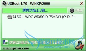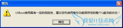 过程很简单,插上你要制作的U盘,打开USBoot 1.7,它会提示“有一定的危险性等”,点确定进入