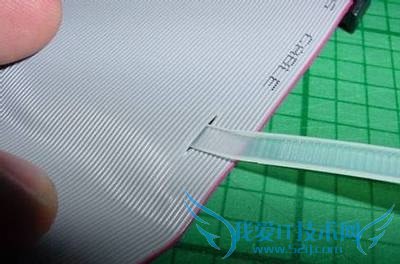 4、正确连线。硬盘连线包括电源线与数据线两条,两者谁先谁后无所谓。对于电源的连接,注意上图中电源接口上的小缺口,在电源接头上也有类似的缺口,这样的设计是为了防止电源插头插反了。至于数据线,现在有两种,早期的数据线都是40针40芯的电缆,而自ATA/66就改用40针80芯的接口电缆,如上图所示。连接时,一般将电缆红线的一端插入硬盘数据线插槽上标有“1”的一端,另一端插入主板IDE口上也标记有“1”的那端。数据线插反不要紧,如果开机硬盘不转的话(听不到硬盘自举的响声),多半插反了,将其旋转180度后插入即可。