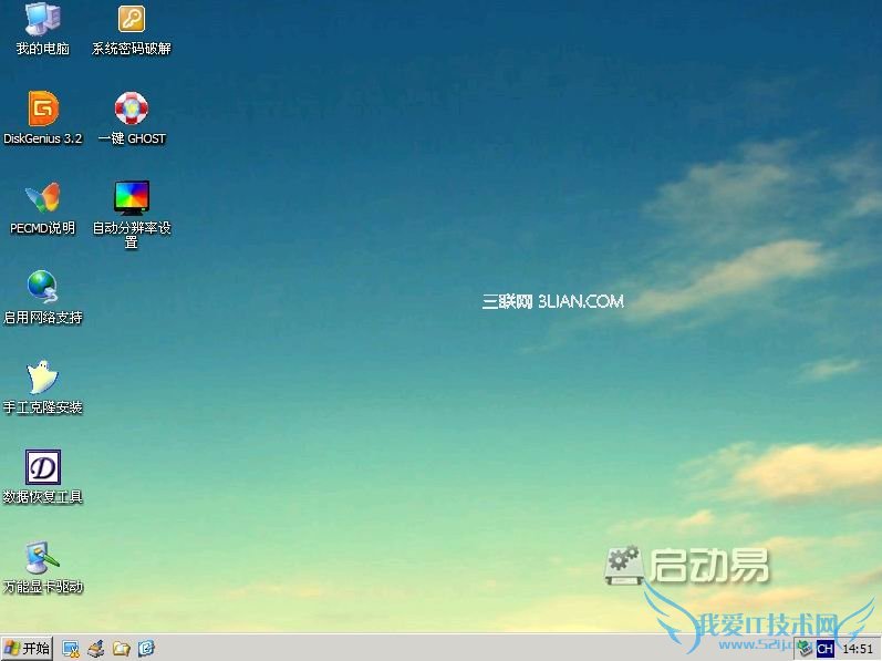进入第一个“运行windows PE(系统安装)”这就是启动易的PE系统了。