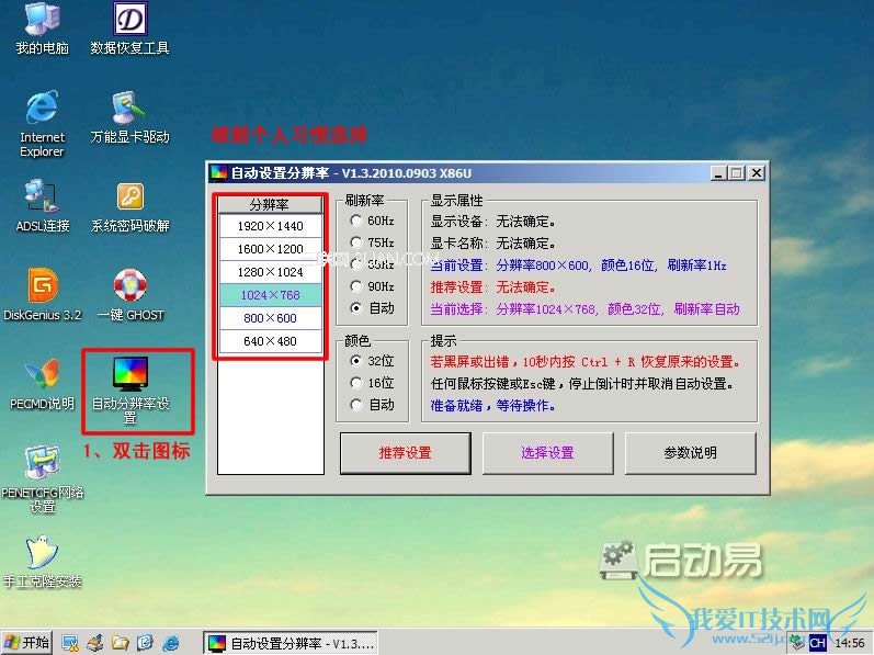 双击“自动分辨率设置”,根据个人习惯设置你想要的显示器分辨率的大小。(如图所示)