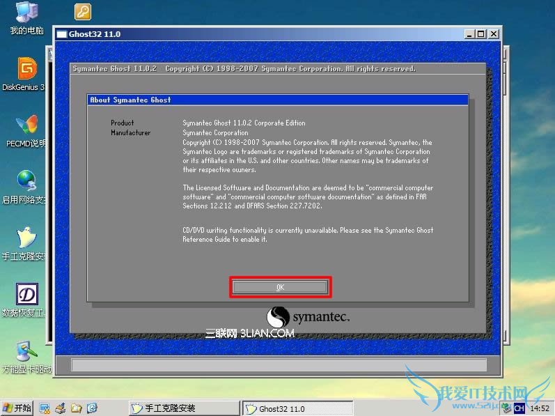 点击“OK”按钮,进入下一个界面(版本:Ghost32 11.0)