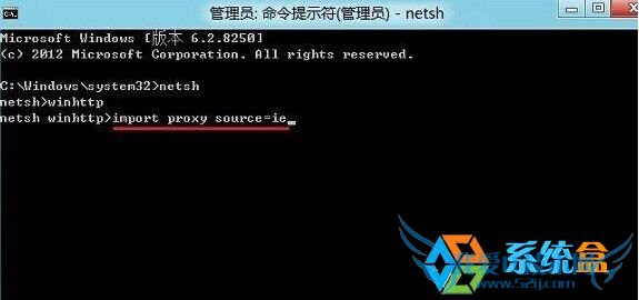 4、后我们再次输入命令:import proxy source=ie 并回车,该命令用来修复win8系统IE浏览器,win8应用商店使用IE接口,IE故障也会引起无法打开应用商店。