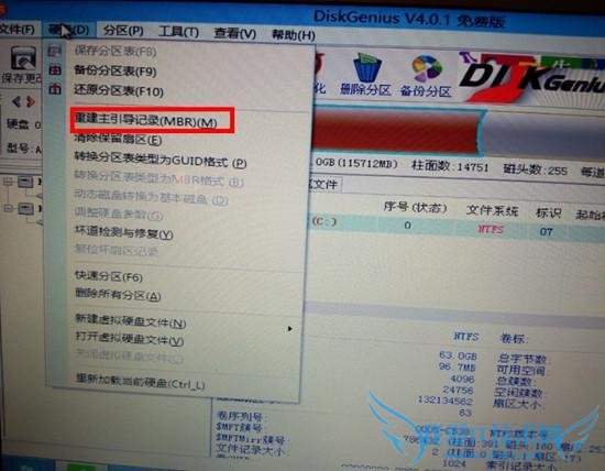 10.分区完毕,再单击界面菜单栏中的“硬盘”,选择“重建主引导记录(MBR)”,会弹出一个界面,点击确定,如图: