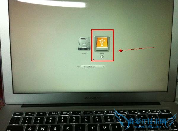 2.将U盘插上电脑,重启电脑,由于苹果笔记本没有Bios设置,想用U盘启动通常插入U盘,电脑启动时长按“optin键”,便会进入一个开机启动选项界面,如图: