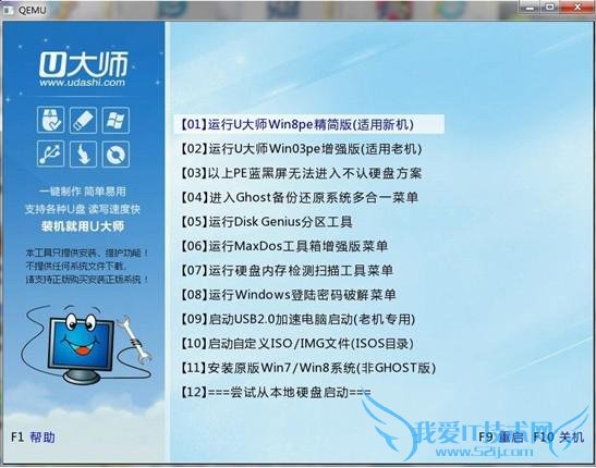 4.将U盘插上电脑,从U盘启动电脑,进入U盘菜单选择界面,可以根据自己的需求选择对应的选项,这里选择【1】。