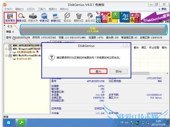 7.删除完所有分区后单击“保存更改”图标,会弹出一个窗口单击“是”如图: