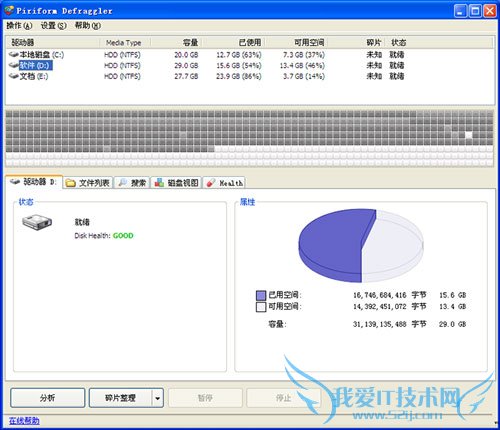 这里为您推荐的当然就是大名鼎鼎的Defraggler了!相比较而言,Defraggler比WinXP系统自带工具速度更快些,具体操作方法也是一样的。