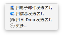 第二步:点击位于您要共享的联系人卡片右下角的分享图标,OS X 将弹出几个共享选项。