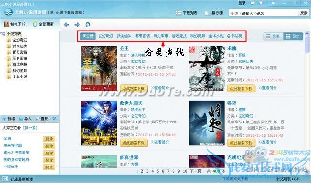 2、在软件的顶部我们可以通过各种分类进行快速查找自己需要的小说