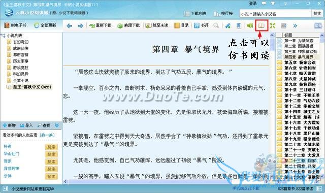 点击下图中的图标,可以进入“仿书阅读模式”,这种模式效果传统美观,操作方便。