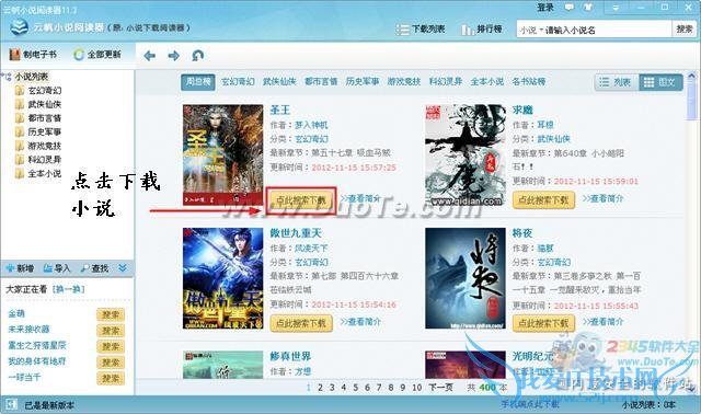 1、打开软件可以看到周热门小说推荐,如下图: