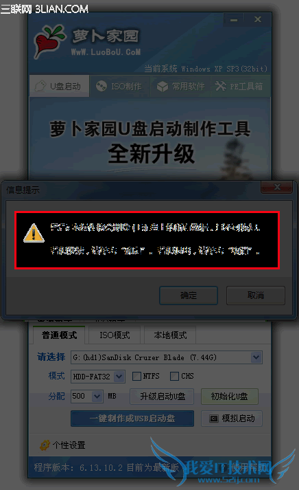 按钮,程序会提示是否继续,确认所选U盘无重要数据后开始制作: