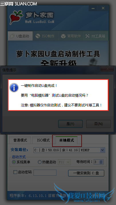 第二步:用萝卜家园U盘装系统软件制作启动U盘