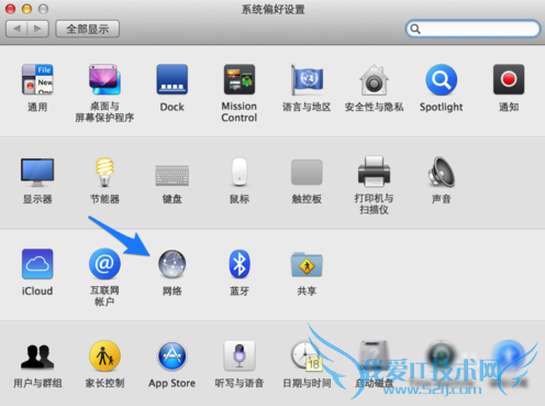 1、先打开 Mac OS 系统中的偏好设置,在列表中点击打开“网络”图标,如图所示