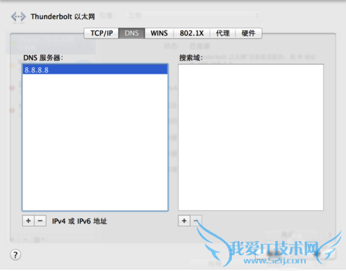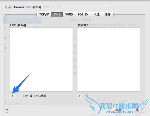 7、在 DNS 设置窗口中,请点击左下方的“+”按钮,添加一个 DNS 服务器地址,如图所示