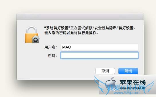 系统会提示你输入密码,这个密码是你安装系统的时候设置的用户名和密码。有些用户是没设密码的,可以直接点解锁,如果忘了密码,到系统预置里的“帐户”设置里更改。