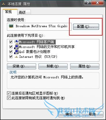 3,在出来的“本地连接 属性”中,单击“配置”按钮