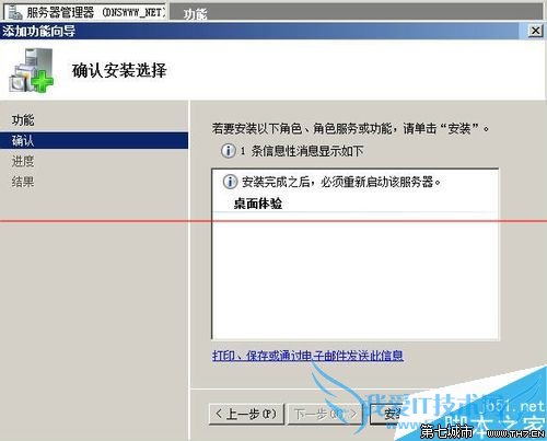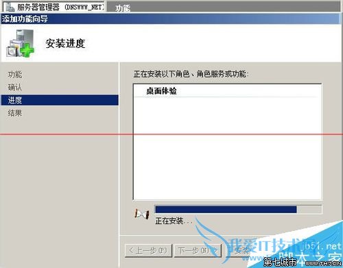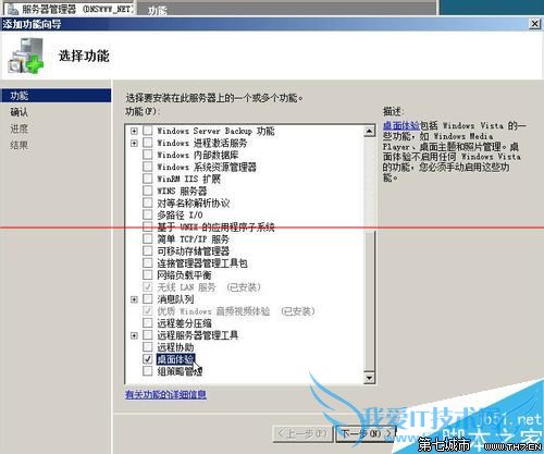 6、在弹出功能向导对话框,找到“桌面体验”,勾选它,然后单击“下一步”;