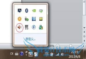 b. 可以到任务栏右侧三角形符号内单击或找到橙色小喇叭图标右击选择声音管理器;