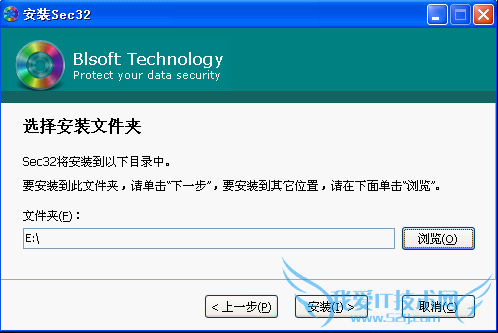 BlsoftSec32整个安装过程非常的简单,唯一需要设置的就是安装路径,软件本身不大,保持默认C盘安装亦可,如图(1)所示: