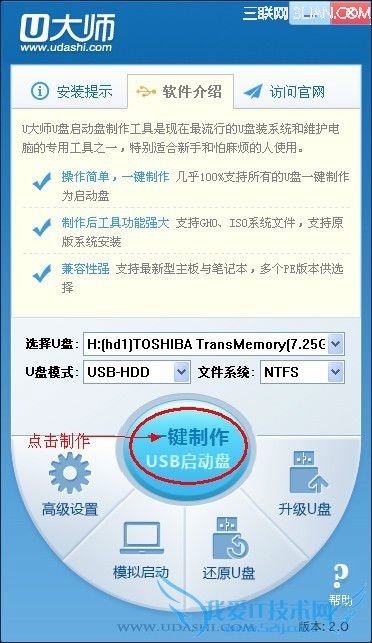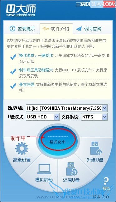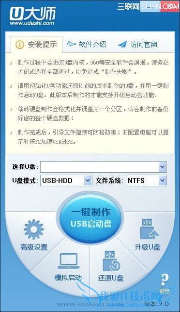 1.双击上步中下载好的U大师U盘启动盘制作工具的安装文件“udashi_2.0.exe”,运行安装程序。