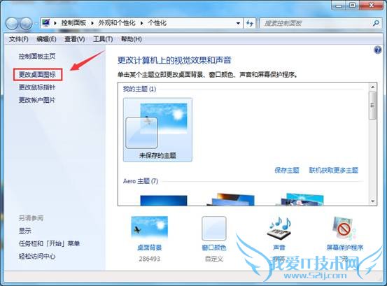 二、接着在个性化窗口中,点击“更改桌面图标”,如下图所示: