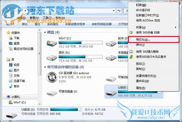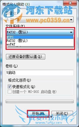 一、①将鼠标移至u盘图标上,单击鼠标右键,在弹出的选项列表中单击格式化;②接着在弹出的窗口中将文件系统类型格式更改为ntfs或者exFAT格式即可,再点击“开始”按钮,如下图所示: