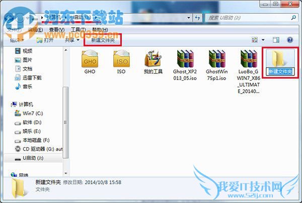 二、打开u盘在根目录下新建文件夹,如下图中在打开的根目录下点击“新建文件夹”,然后把根目录下的文件放入新建文件夹中即可,如下图所示: