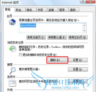 对于我们已经点了保存的密码怎么办?“Internet选项”也可以清除!在“Internet选项”中的“常规”标签下“浏览历史记录”栏中选择“删除”