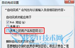 在“自动完成设置”窗口中不要勾选“表单上的用户名和密码”,以后就再也不会自动保存我们的密码了