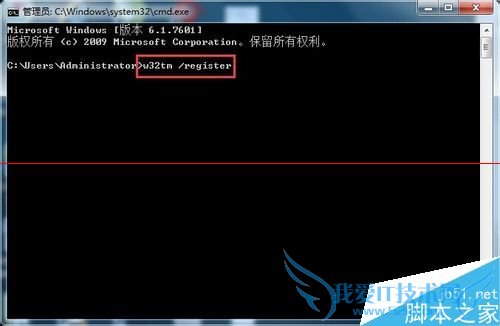 7、点击【确定】打开了命令提示符窗口,在窗口中输入【w32tm /register】,点击【回车键】。
