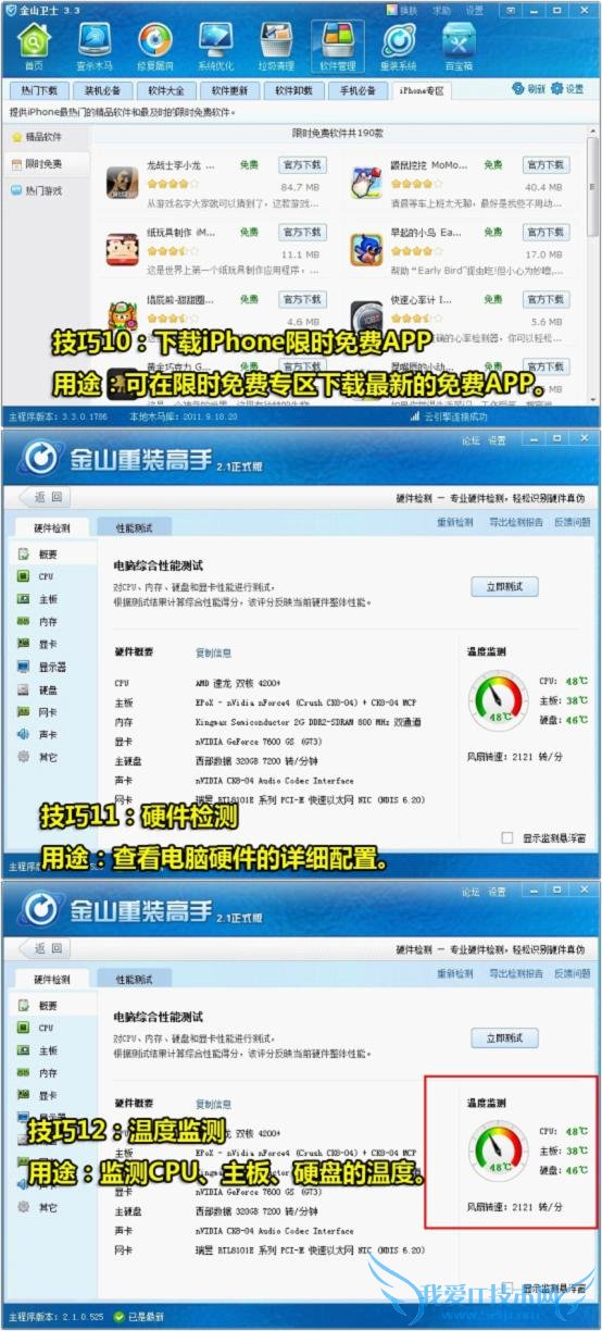 图5 下载iPhone限时免费APP、硬件检测、温度监测