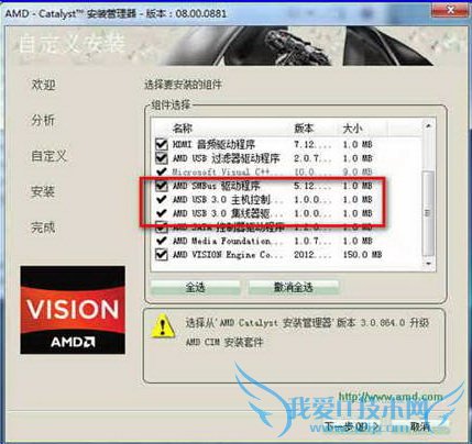 其实驱动程序安装包含有USB3.0设备驱动程序,由于某些原因导致安装失败。可尝试重新安装网站提供主板芯片组及显卡驱动程序,安装过程中选择“自定义”,确保usb3.0选项勾选。如下图所示: