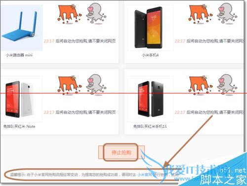 7、注意最下面那句温馨提示: “由于小米官网抢购流程经常变动,为提高您的抢购成功率,请同时去 小米官网 进行抢购,此抢小米插件仍需您进行验证码填写。”所以同时打开官方网站,并保持账户是登陆状态。以防不测。